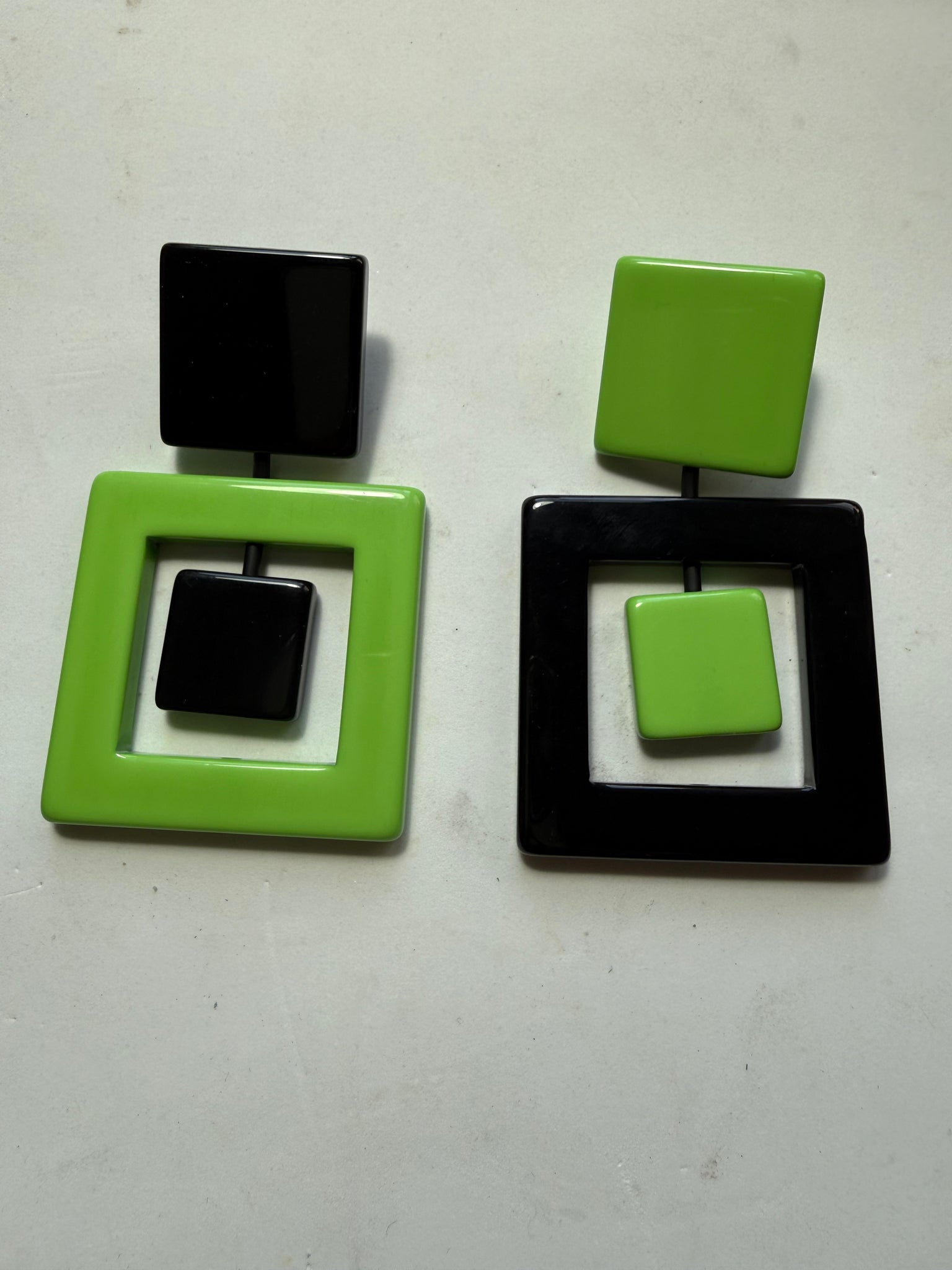 Orecchini gemelli diversi nero verde
