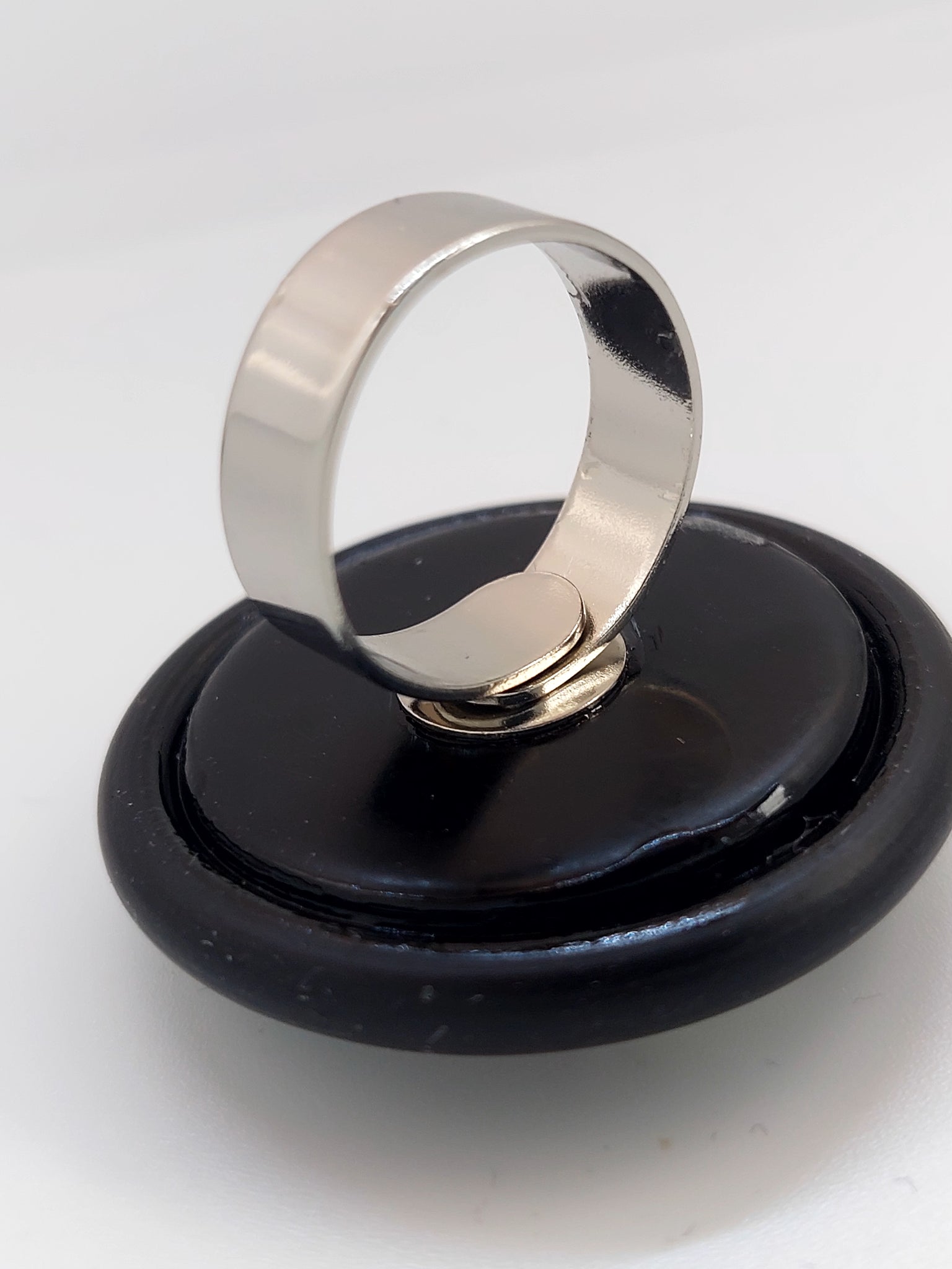 Anello totalmente anallergico con rilievo in ottone montato su resina e perimetro in tubo in pvc.