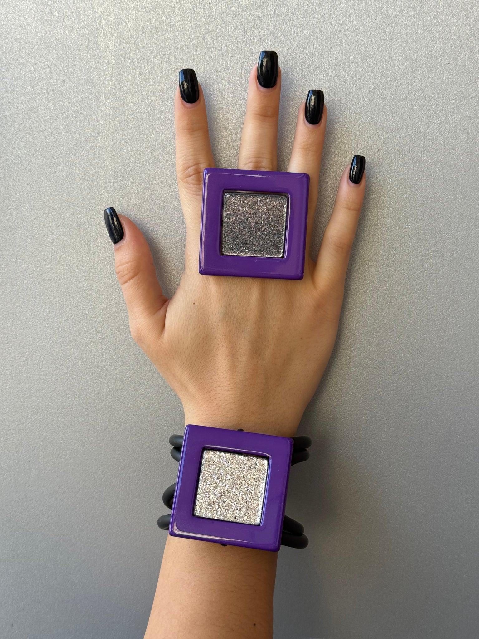 Parure quadro viola e argento glitter