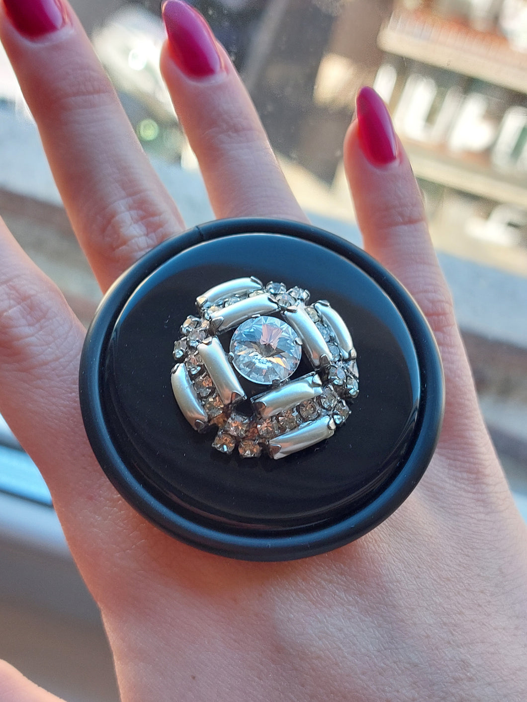 Bottone vintage montato su resina e anelli in galvanica al Titalio regolabile