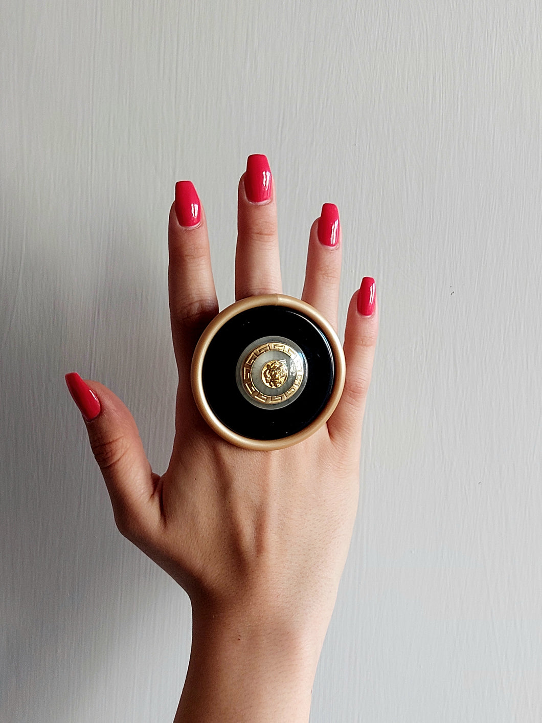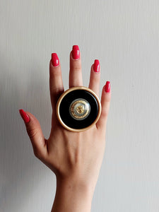 Bottone vintage montato su piastra in resina ,anello regolabile anallergico