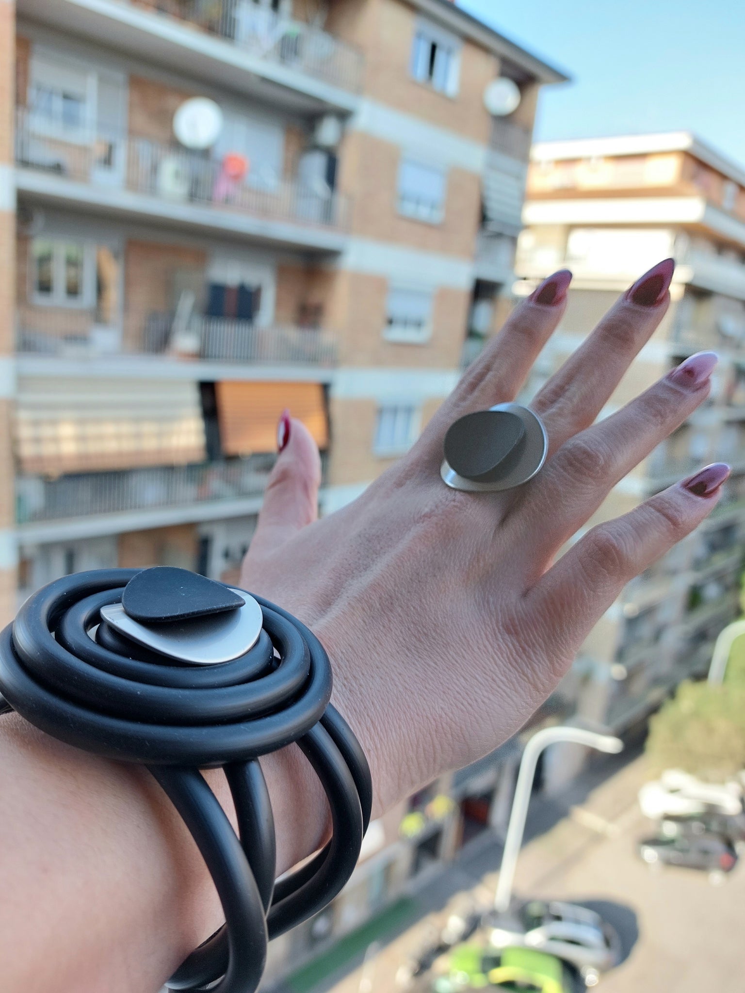 Bottoni in metallo applicati su una struttura in pvc