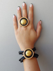 Bottoni vintage ,resina e tubo in pvc,anello regolabile totalmente anallergico
