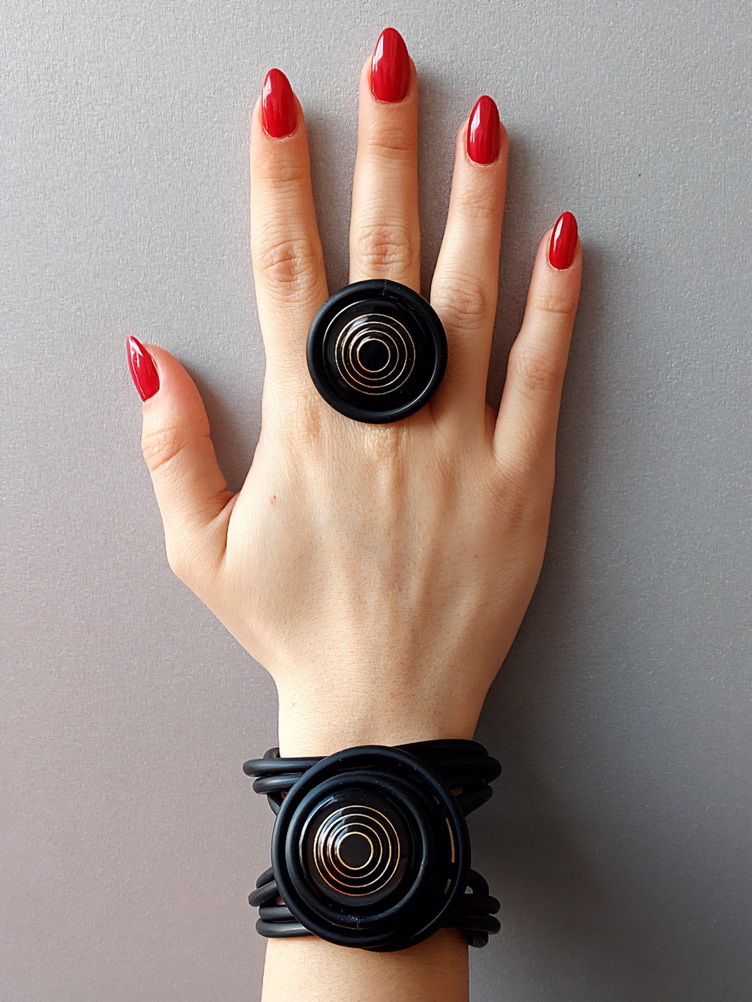 Resine e pvc con bottone vintage,anello regolabile nickel free