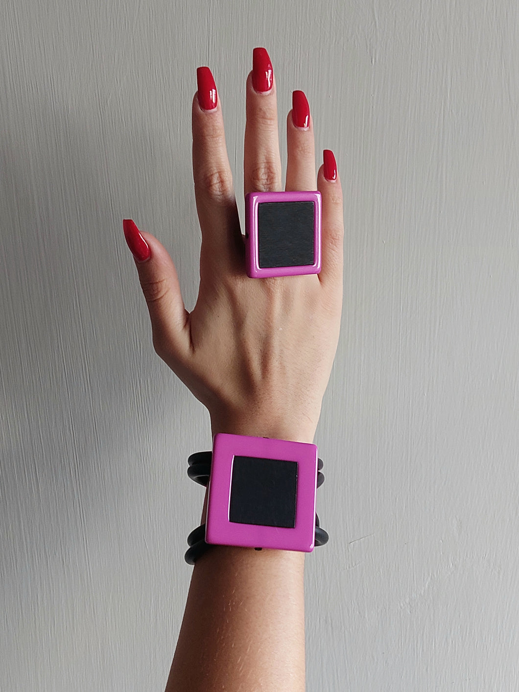 Resine colorate e tubo in pvc ,anello e bracciale regolabili