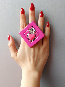 Resine e cuore in alluminio,anello regolabile totalmente anallergico