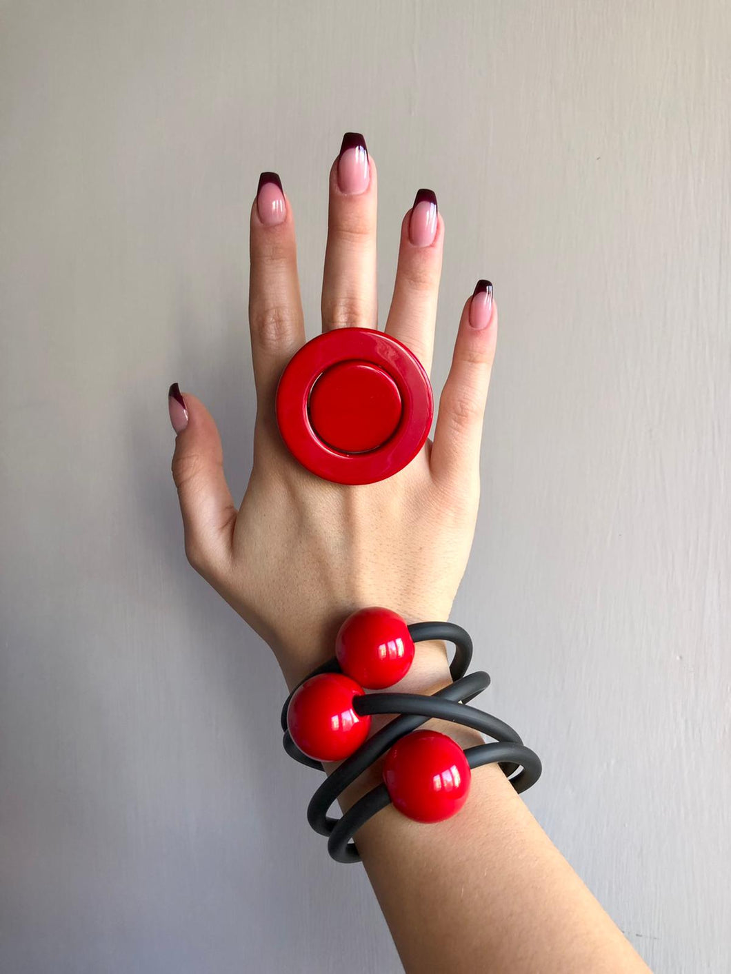 bracciale in pvc con ball in resina come anche anello