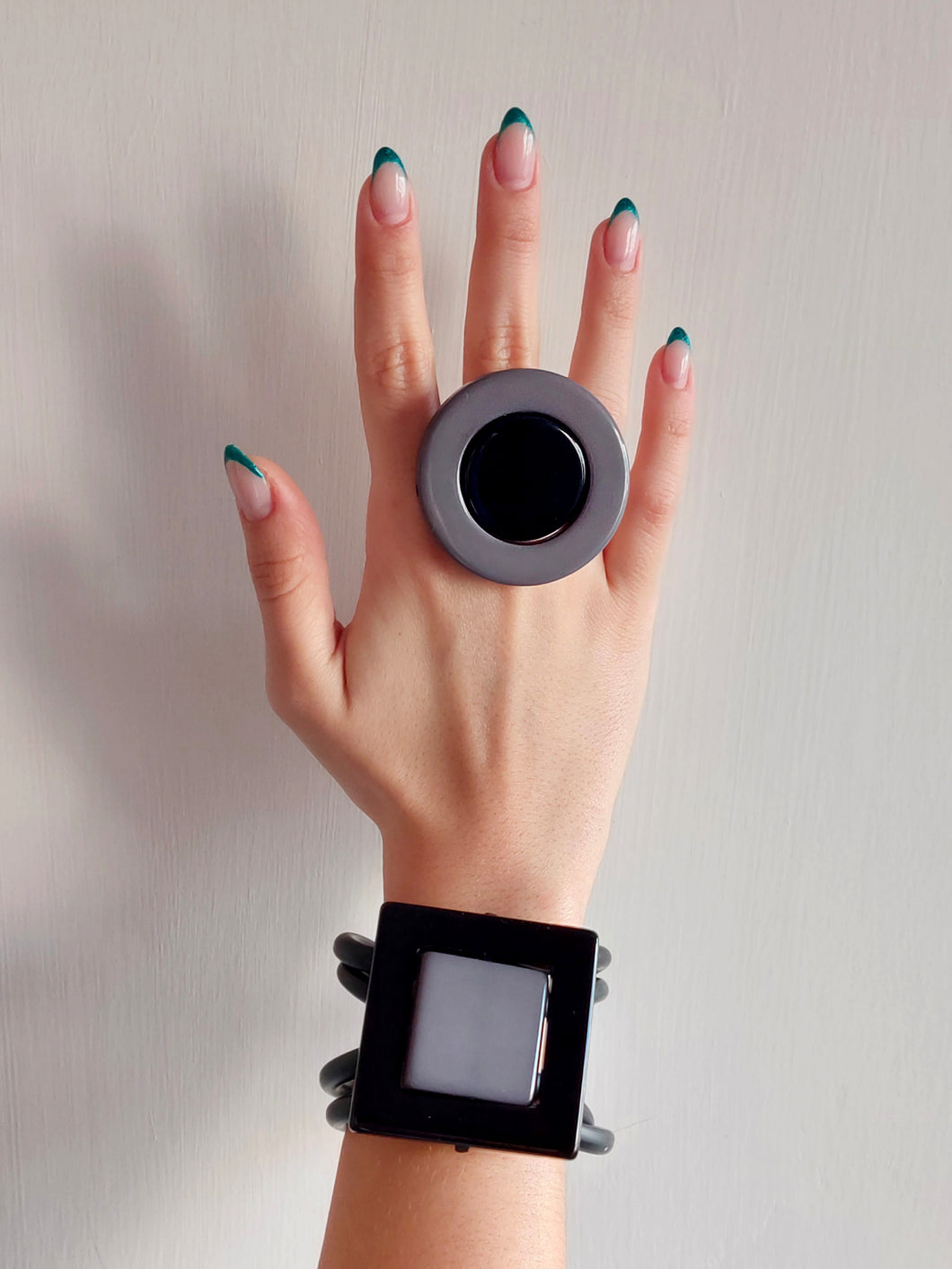 Resine colorate e tubo in pvc anello regolabile con galvanica al Titanio anallergico nickel free