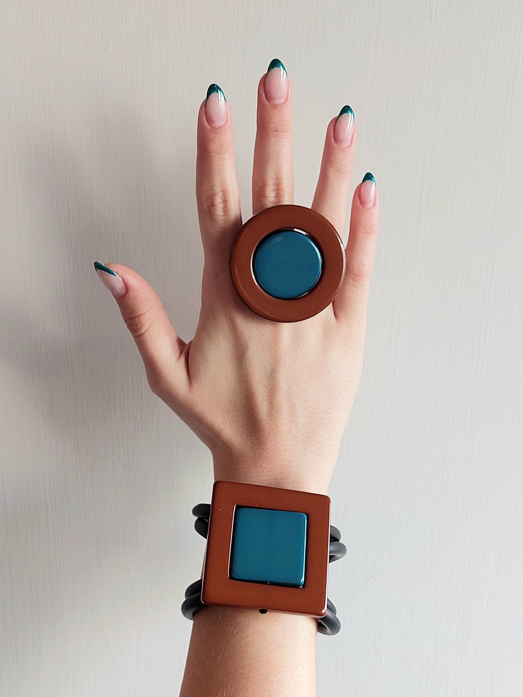 Resine colorare e tubo in pvc anello e bracciale regolabili,base anello in galvanica in Titanio totalmente anallergico nickel free