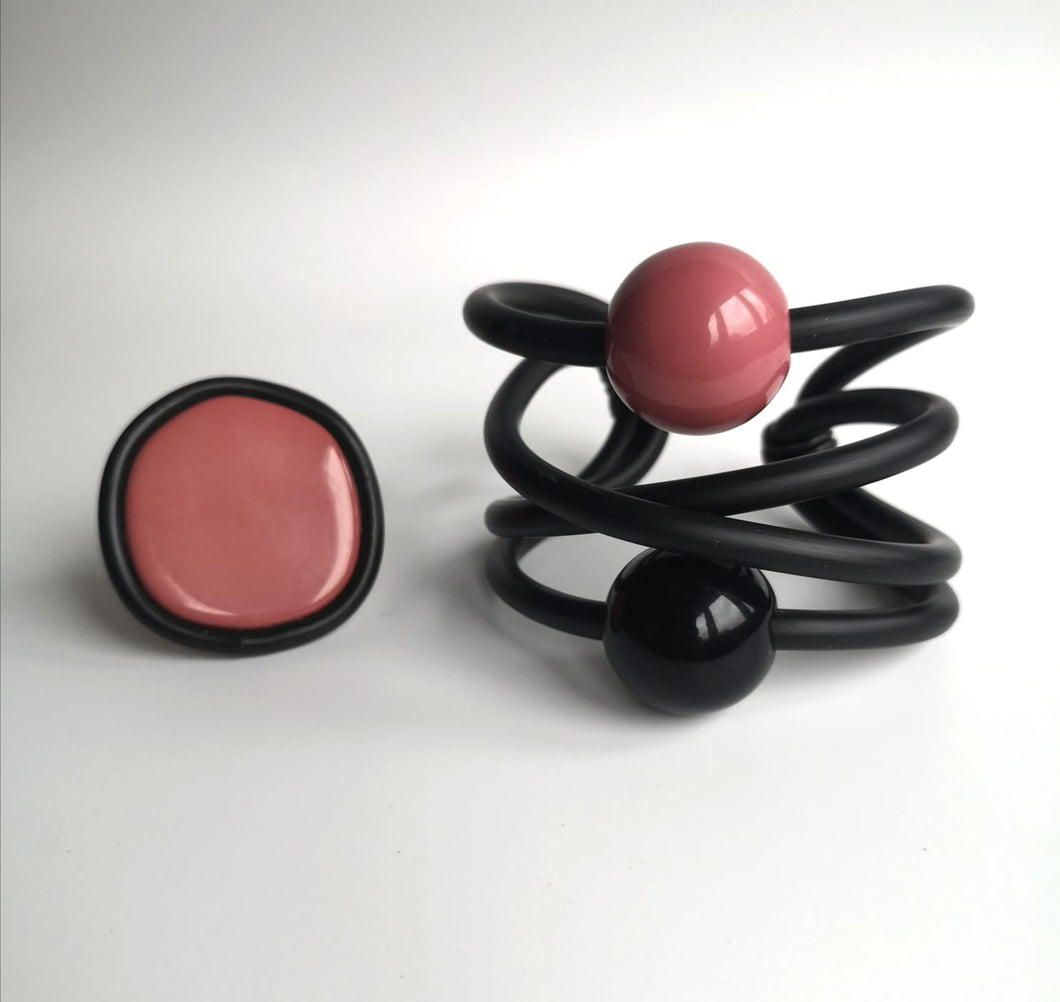 Balls in resina e tubo in pvc ,anello e bracciale regolabile