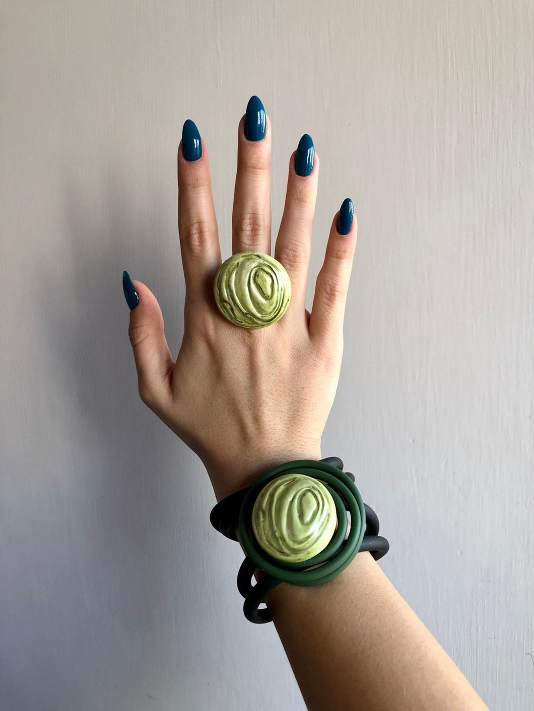 parure anelli vintage in porcellana bracciale in pvc
