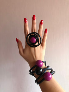 bracciale in pvc sfere in resina ,bracciale e anello regolabili